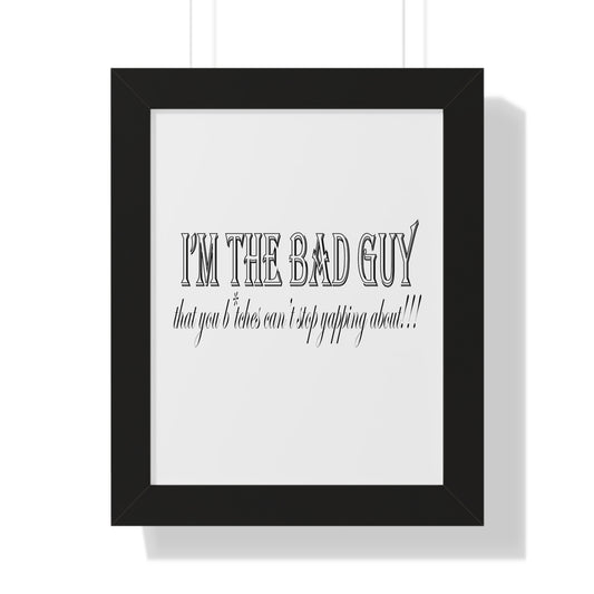 I'm the bad guy.....that you b*tches can't stop yapping about!!! Typography quote Framed Vertical Poster
