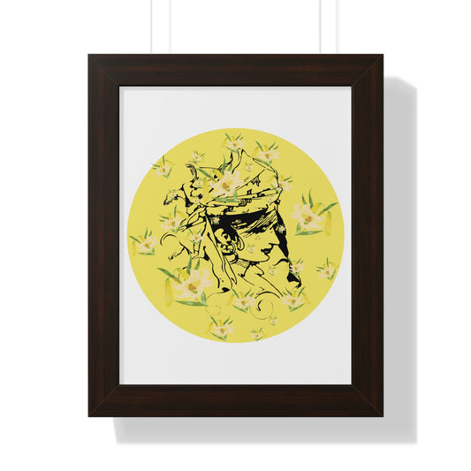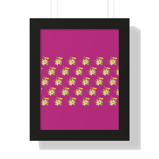 Daffodil Pattern Art Pink Framed Vertical Poster