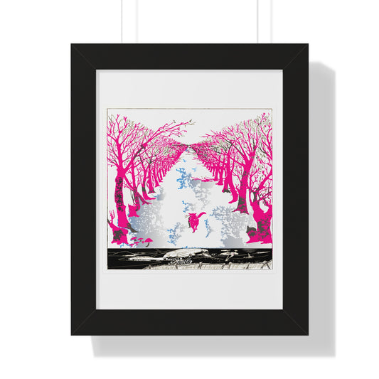 Pink Cat in the Woods Art Work Framed Vertical Poster