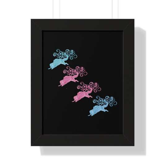 Pink & Blue Four Cat's Tail's Art Framed Vertical Poster