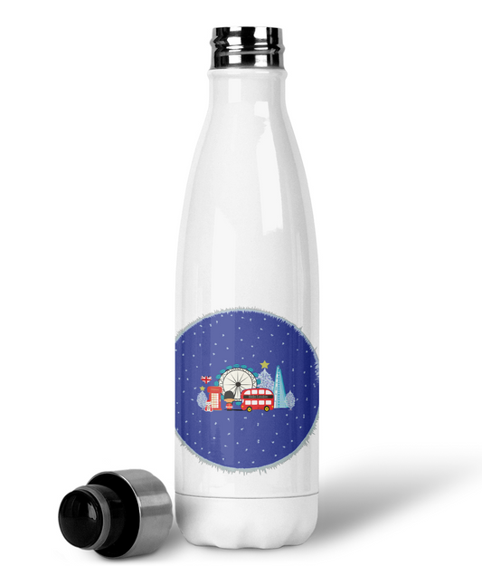 London City in the Winter Illustration Cola Shaped Bottle