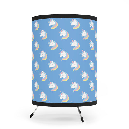 Unicorn Pattern Blue Tripod Lamp with High-Res Printed Shade, US\CA plug
