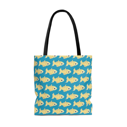 Cream Fish Pattern Turquoise Tote Bag (AOP)