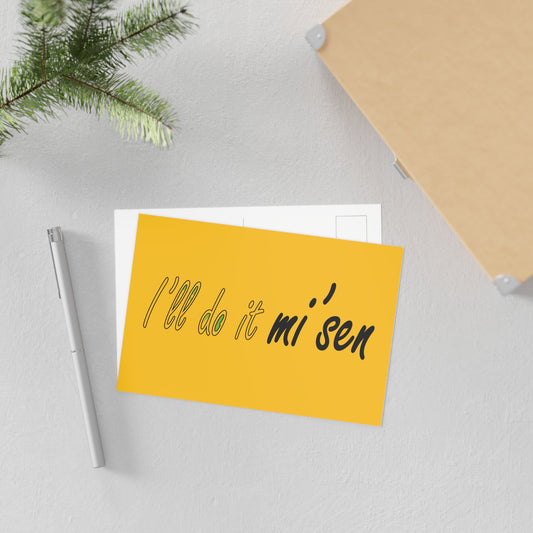 I'll do it mi' sen Sheffield Dialect Quote, Typography Yellow, Fine Art Postcards