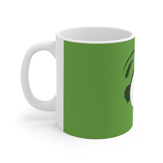 Rabbit Ink Black & White Art Green Accent Coffee Mug, 11oz