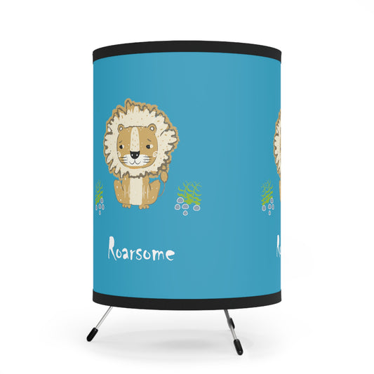 Lion Roarsome Illustration Turquoise, White Writing Tripod Lamp with High-Res Printed Shade, US\CA plug