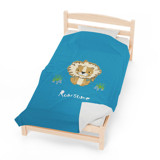 Lion Roarsome Illustration Turquoise Velveteen Plush Blanket