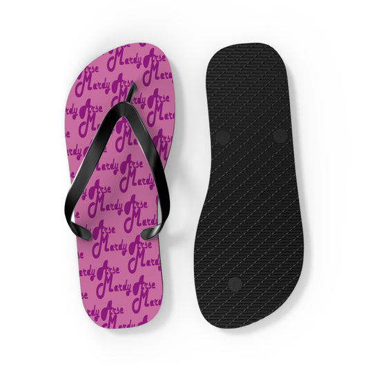 Mardy Arse, Sheffield Dialect Purple Typography Pattern Flip Flops