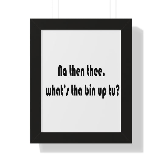 Na then thee, what's tha bin up to? Sheffield Dialect Framed Vertical Poster