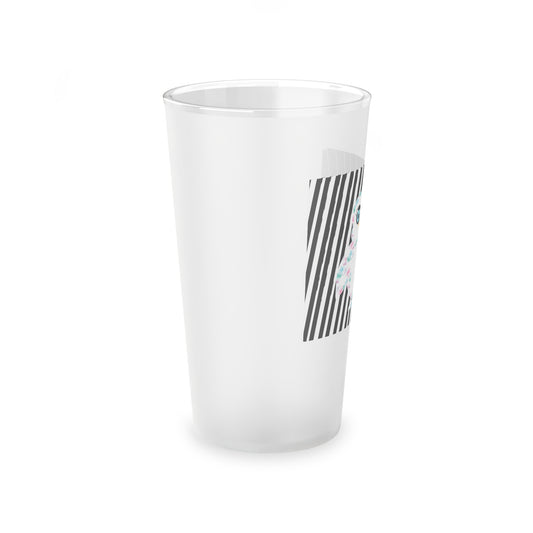 Penguinie Black & White Stripes Frosted Pint Glass, 16oz